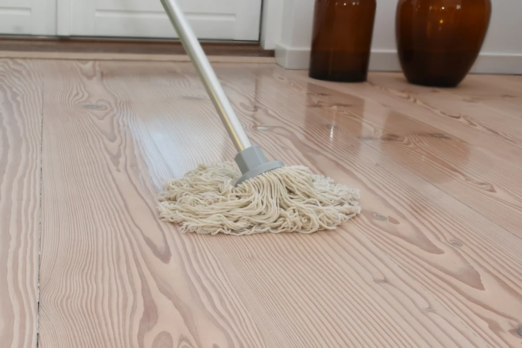 • Vask gulvet i træets længderetning. Der kan med fordel benyttes 2 spande, hvoraf den ene bruges til at vride moppen op i, mens den anden rummer rent sæbevand. Der må ikke efterlades vand på gulvet efter vasken.